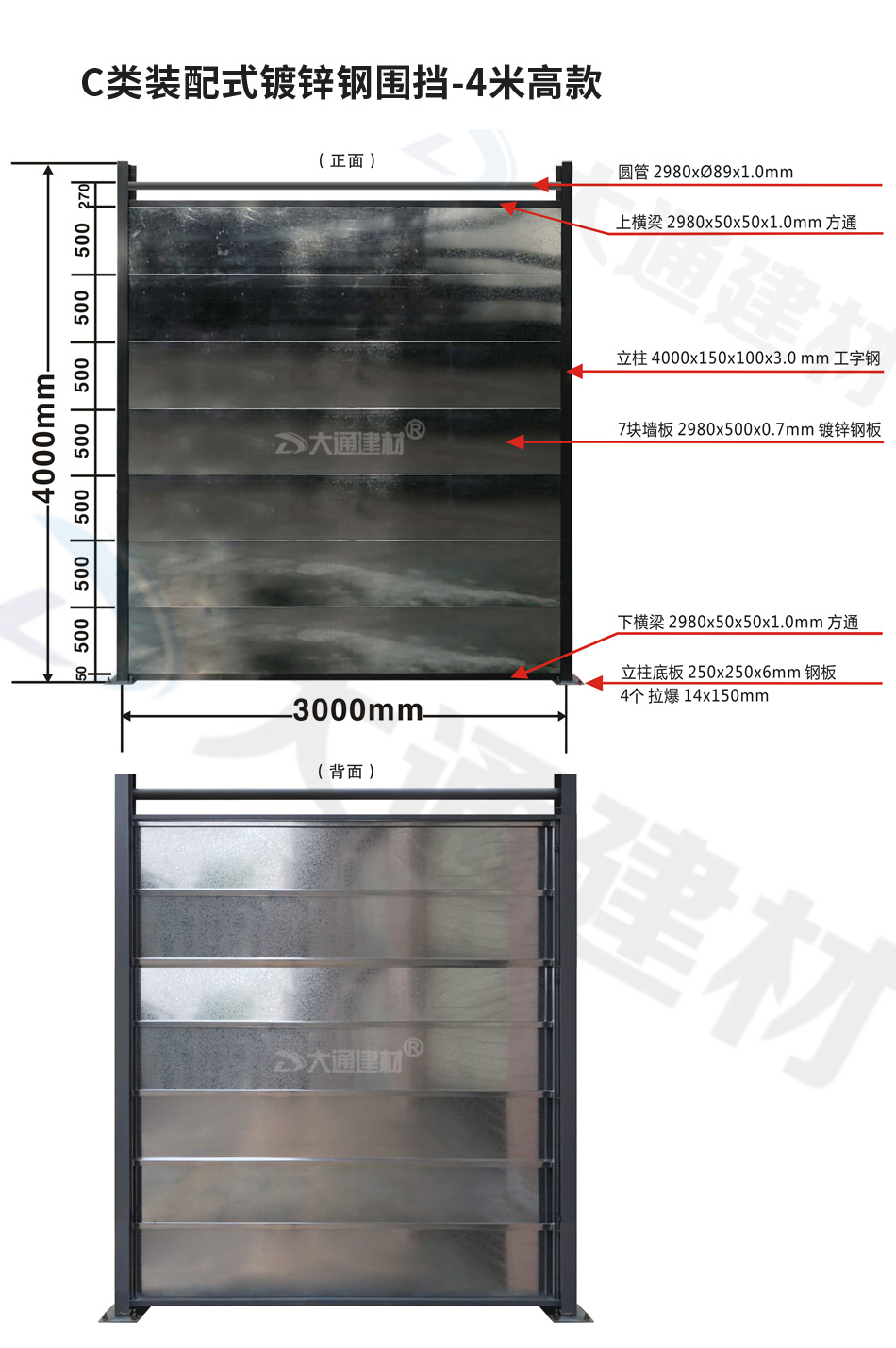 深圳市大通建材生產的C類裝配式鍍鋅鋼結構圍擋4米高定制款,把深圳市龍華區建筑工程施工現場圍起來,為施工安全保駕護航。
